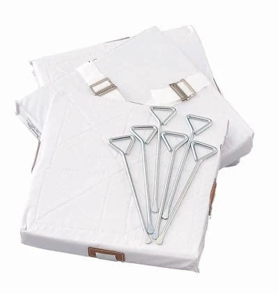 - Includes 3 bases each w/ two nylon web straps & six steel spikes