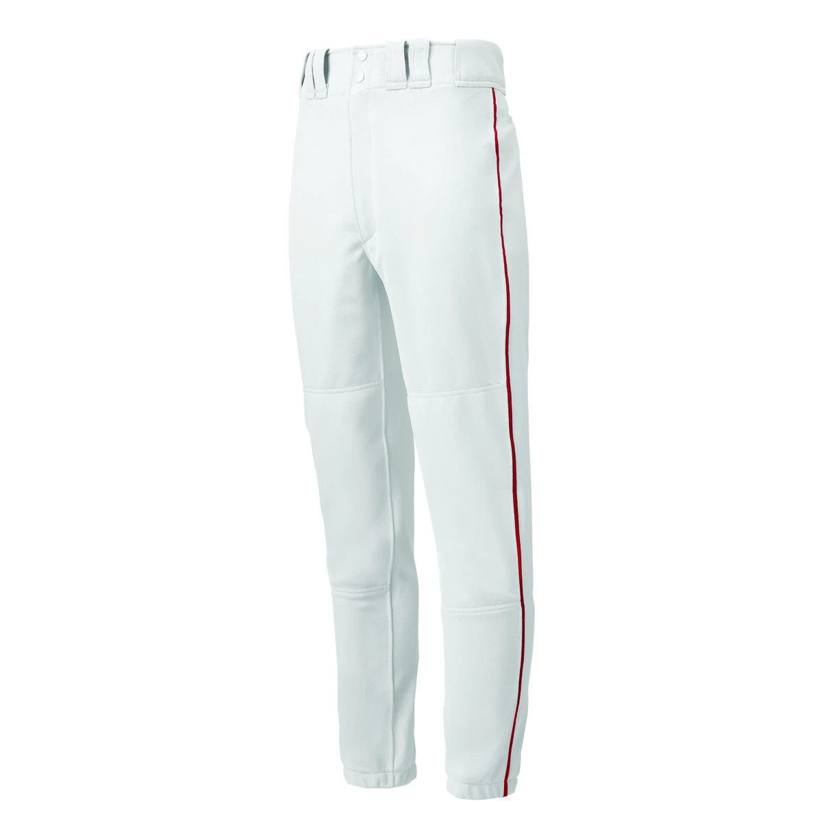 The Mizuno Adult Premier Piped Pant 350148 is a great uniform pants choice for any player running around the baseball or softball diamond this season. The pants look fantastic when paired with just about any uniform top. They also have been constructed with care and provide a high level of functionality to their user. The Mizuno Adult Premier Piped Pant 350148 uses 100 percent polyester material. This material is extremely durable. Thus, it will not rip on players when they dive or slide during games. Therefore, these long lasting pants will likely last players through multiple seasons of action. The pants are ankle length and provide a great tight fit on a player s lower body. The easy to use tunnel-belt-loop on the product s waistline only makes the pants fit even better on the person wearing them.