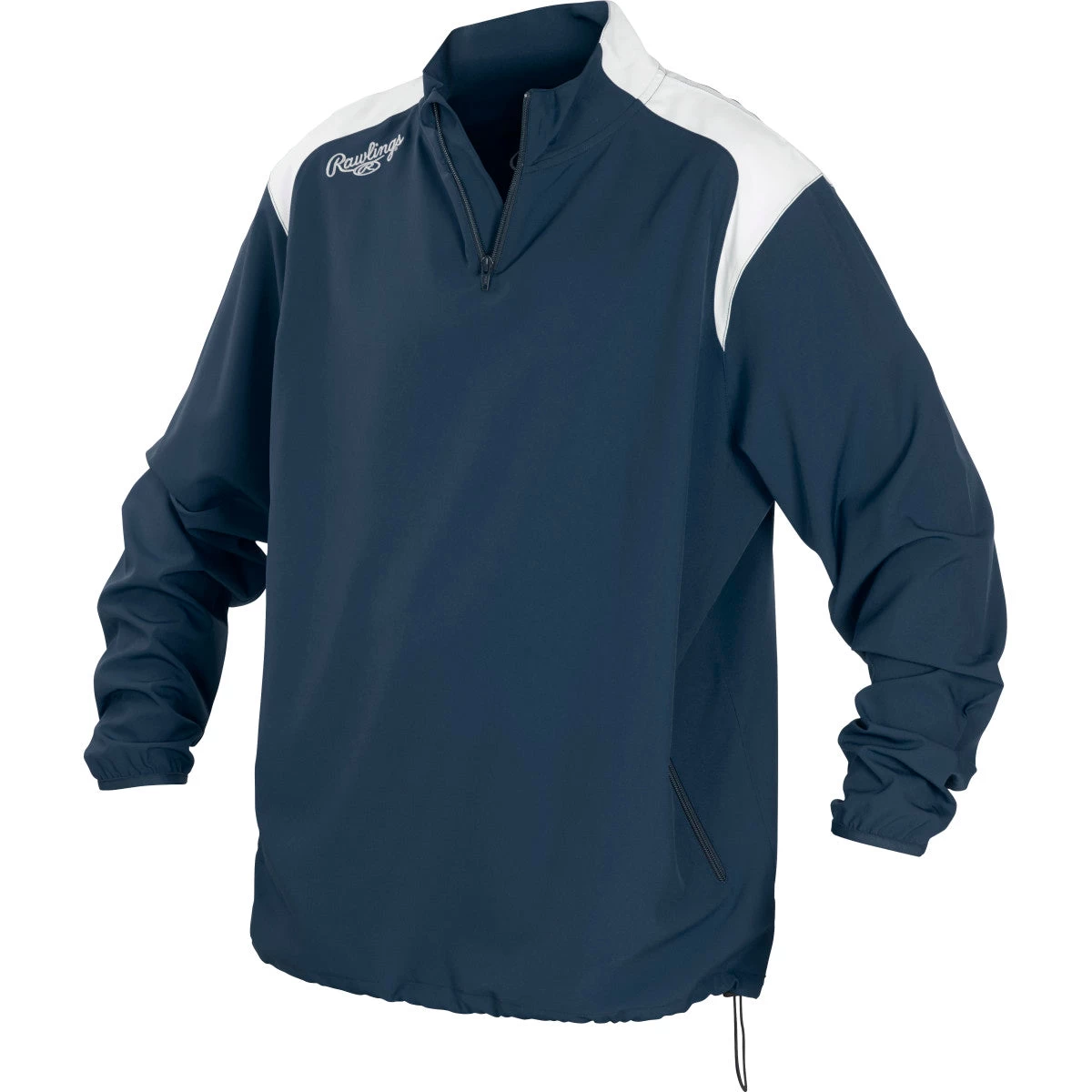 Also, if you have to put things in your pockets while you warm up to help but don t need it at the time, they have side pockets with zippers to keep it from dropping. It makes it easier to hold things while you are throwing, running, or stretching. Lastly, at the bottom they have a straight hem with a drawstring cord. If you aren t a fan of the loose clothing while you are warming up you can pull the string to tighten you jacket. It is a basic addition but all the additions add up to make a great one-quarter zip jacket. Choosing a product from a great brand is essential. You know these brands are going to give you the best equipment and apparel out there. With Rawlings, you are getting a great company name to back the gear. You know they are going to give you a great jacket with great materials. So, pick yours up from Baseball Bargains today!